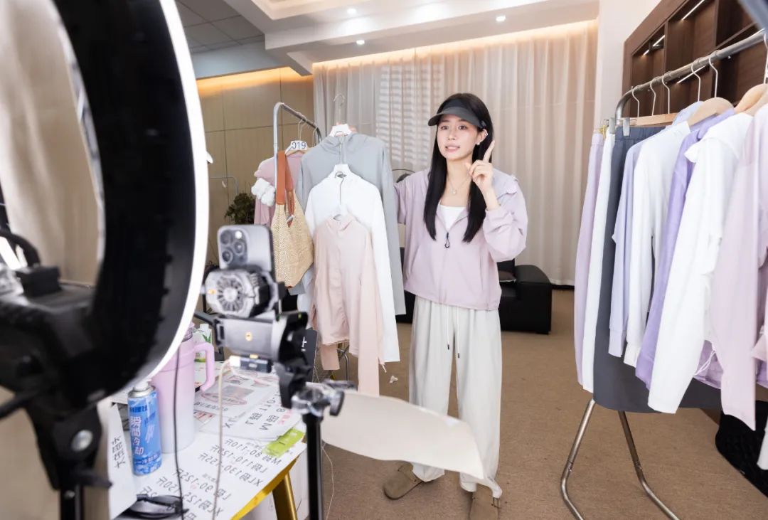 天门通天传媒公司直播间,主播忙着推荐防晒衣。