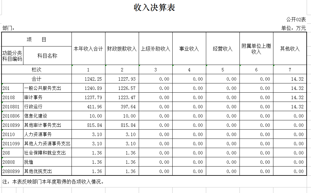 2018年度本年收入1242.25万元,其中:财政拨款收入1227.93万元,占98.85%;无上级补助收入;无事业收入;无经营收入;无附属单位上缴收入;其他收入14.32万元,占本年收入合计的1.15%。