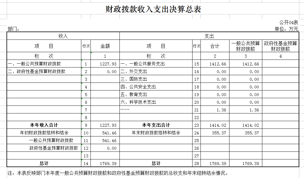 (四)财政拨款收入支出决算总表(汇总附表4)
