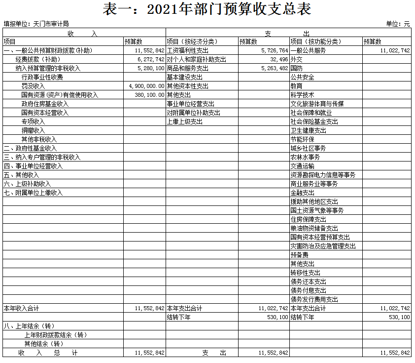 天门市审计局2021年部门预算