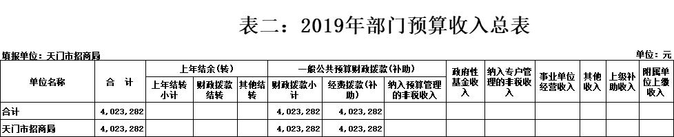 纳入天门市招商局2019年部门预算编制范围的预算单位包括本机机关及招商一、二、三、四部;无下属二级单位。