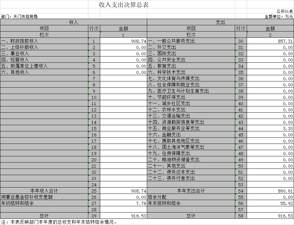 天门市招商局部门决算包括:机关本级决算,本机关无基层单位。