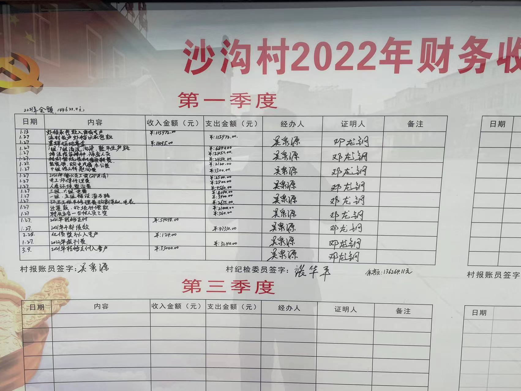 横林镇沙沟村2022年一季度财务收支流水账公示